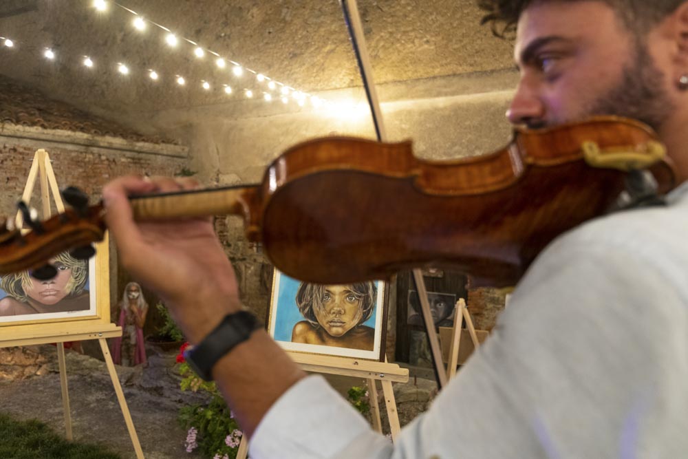 La mostra di quadri che ritraggono Nega, opere di pittori di tutto il mondo ispirati dalla più famosa foto di Nino Bartuccio e le sue foto originali dei molteplici viaggi in Brasile, hanno offerto emozioni uniche alle centinaia di attenti partecipanti all’evento, incantati anche dalla location dell’esposizione: il suggestivo scenario della corte del Palazzo Ducale di Piraino che, illuminato ad arte per l’occasione, ha aperto le sue porte seicentesche per accogliere artisti e appassionati d’arte, nonché la storia di vita che ruota attorno alla foto scattata da Nino Bartuccio nel 2004 e che nel corso degli anni è stata conosciuta e riprodotta in tutto il mondo, come testimoniano le oltre 25 miliardi di interazioni certificate da Google e le centinaia di riproduzioni.